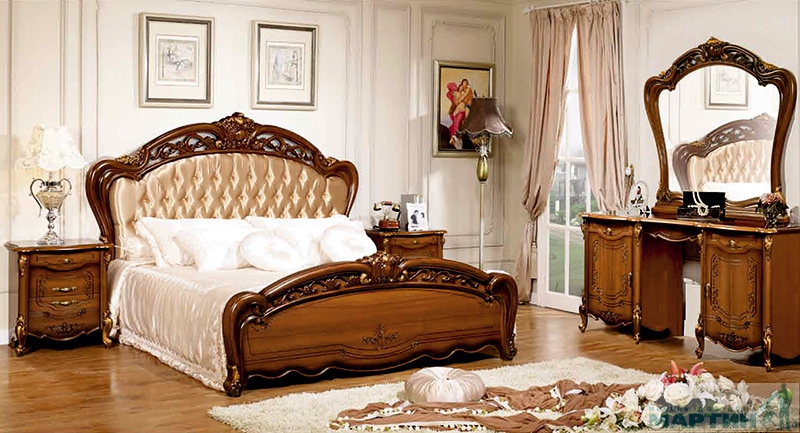 Спальный гарнитур в классическом стиле. Корпус ЛДСП+ МДФ Фасады МДФ Основание кровати ортопедическое основание в комплекте Размеры Кровать 2140*2100*1474 решетка в комплекте Тумба прикр. 632*475*611 Туал. стол 1662*475*760 спальное место (матрас) 1800*2000