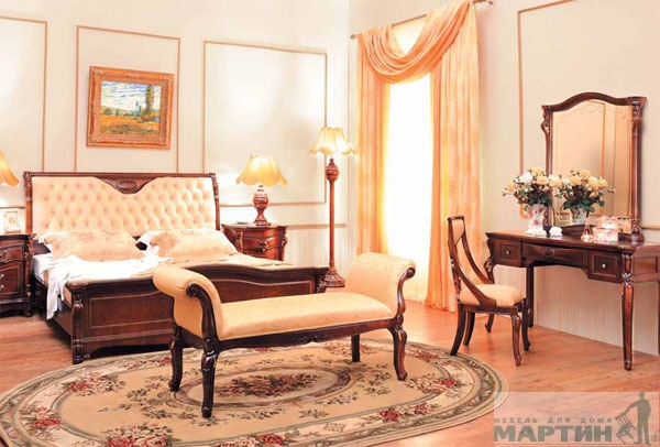 Коллекция Элизабет выполнена в классическом стиле. Изголовье кровати декорировано натуральной кожей.