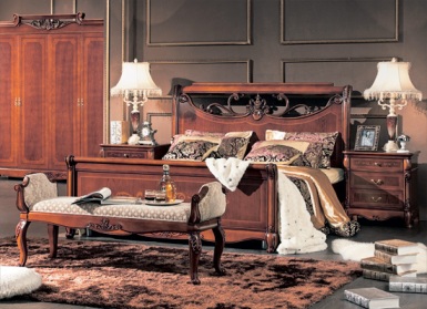 Размеры: кровать - 188*228*133см., тумба - 65*42*68см., туалетный стол с зеркалом - 145*50*76см., гардероб 4-х дверный - 210*64*219см.