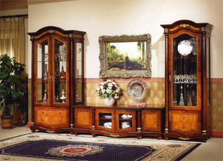 Гостиная «Мадлен» — это дворцовый стиль, тонкая игра цвета и текстуры, природное тепло благородной древесины ценных пород с рельефной золотой отделкой, резной декор мебели. При ее изготовлении использованы последние технологические разработки.