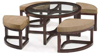 Современный дизайн, соединяющийся с истинным ощущением атмосферы города, имеет уникальную особен-ность – четыре выдвижных пуфа. Все столы и основания столов и пуфов покрыты гладким темно-коричневымшпоном. Сиденья пуфиков сделаны из микрофибры на основе верблюжьей шерсти. Пятимиллиметровая сте-клянная столешница с откосом в 2,5 см используется у приставного, коктейльного и придиванного столиков.Закаленное 10мм стекло покрывает декоративный стол. Все столы Джунипер сделаны из твердолиственнойдревесины.Производитель: США-Китай